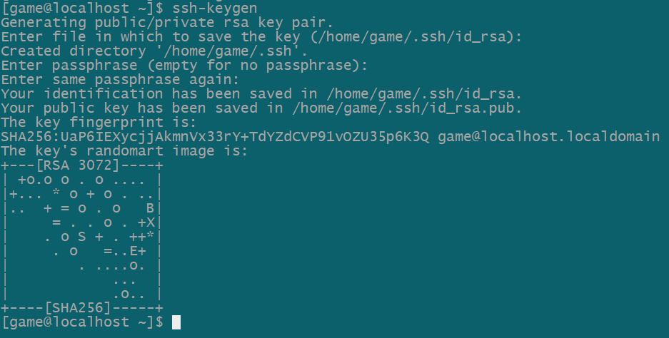 usermod -G wheel game切换到普通用户执行ssh-keygen